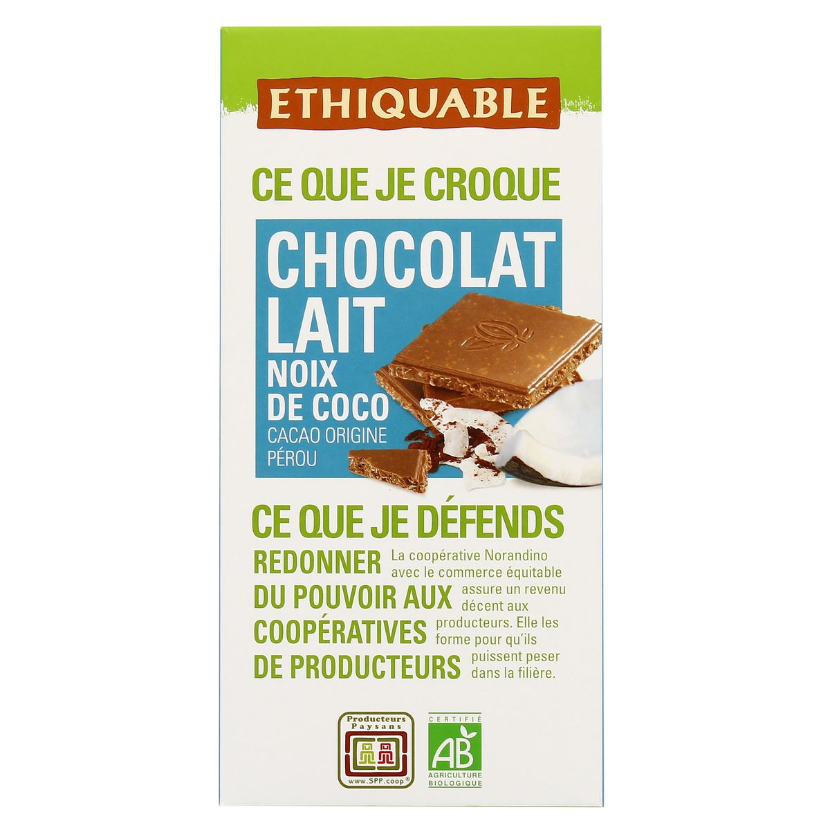 achat vente ethiquable chocolat au lait et noix de coco bio 100g